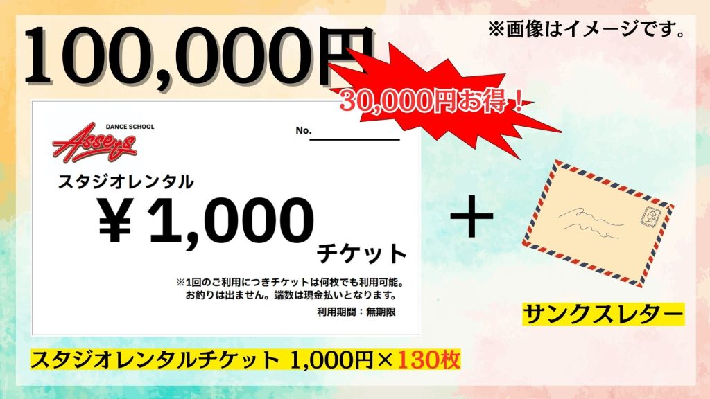 ・スタジオレンタルチケット ×支援金額に応じた枚数