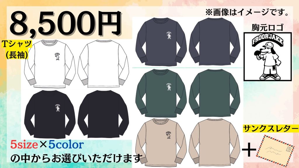ストリートダンスブランドFROOR JAKK様から、支援として今回のプロジェクトのためにデザインを提供していただきました。手渡し、またはご自宅に送付いたします。