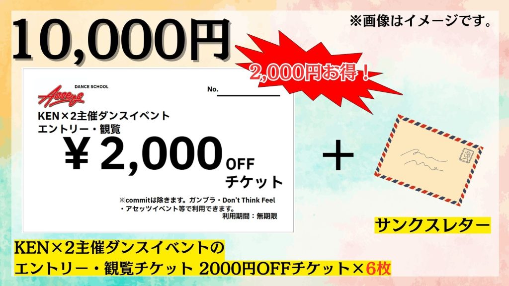 ・KEN×2主催のダンスイベントのエントリー・観覧 2000円OFFチケット×6枚